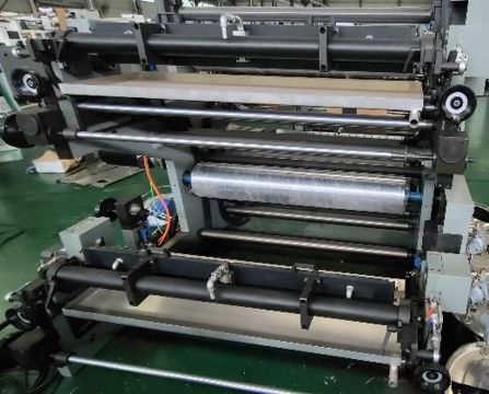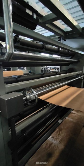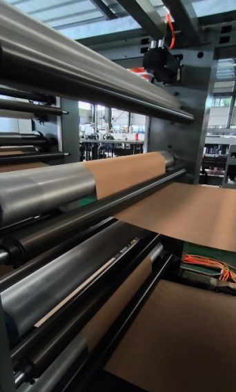 Essa unidade de impressão flexográfica da máquina tubeira para saco valvulado é uma impressora em linha de 4 cores. Para produzir sacos valvulados com comprimentos diferentes, é necessário trocar os cilindros de chapa e as rodas.