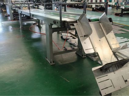 Após o corte, tubos de saco de papel vão para a unidade de descarregamento de saco separadamente, movendo-se lentamente na esteira. Quando os tubos atingem determinada quantidade, o cilindro perto da área de descarregamento de sacos ascenderá para dar partida na correia no meio; tubos de saco entre a estrutura de suporte e correia ficarão imóveis e os tubos de saco no cilindro traseiro entrarão na área de descarregamento. Isso ocorre com o intuito de manter o número do tubo de saco de papel em mente. Os tubos de saco de papel da frente serão sobrepostos. Em determinado momento, o cilindro retrai e os tubos de saco de papel serão enviados de volta para a unidade de descarregamento de saco valvulado.