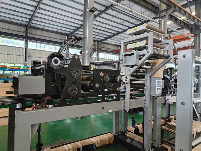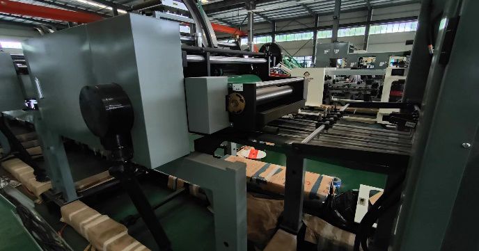 A unidade de formação de fundo é equipada com um dispositivo de recorte de fundo para dar assistência à formação do fundo, com auxílio de um dispositivo de roda adesiva, cujo formato é ajustável de acordo com as necessidades e especificações dos sacos de papel. Lembre-se de colar a placa adesiva no local especificado posteriormente.