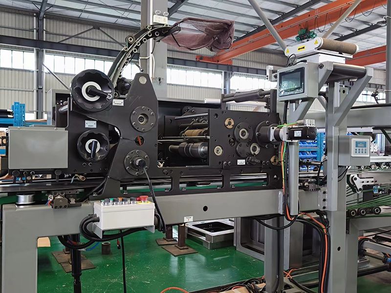 O mecanismo de alimentação da máquina coladeira de fundo para saco valvulado utiliza rolos rotativos para alimentação. Rolos pequenos giram em torno de rolos maiores. Ao mesmo tempo, os rolos pequenos rotacionam de forma reversa, sendo possível alimentar 8 tubos de sacos de papel por rotação.