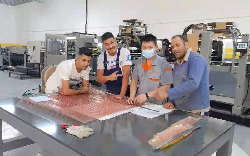 No final de 2020, um cliente argelino chegou até a Youniker para adquirir uma máquina tubeira para saco valvulado ZT1962 e uma máquina coladeira de fundo para saco valvulado FM2018. Propusemos um plano personalizado para os clientes com base em suas necessidades, o método para calcular os custos de produção de sacos de papel e, em seguida, apresentamos o processo de produção de sacos valvulados. As máquinas encomendadas chegaram à fábrica do cliente em março de 2021. Em maio de 2021, a equipe de instalação da Youniker chegou à fábrica para ajudar na instalação e ajuste das máquinas. Também oferecemos um guia do usuário e um plano de gestão ao cliente, treinando a sua equipe de produção. Enquanto ajustavam as máquinas de fabricação de válvulas, os engenheiros da Youniker ajudaram o cliente a consertar sua máquina auxiliar, ganhando alto reconhecimento por nossos produtos e serviços. Em 2022, o cliente fez o pedido de uma outra máquina coladeira de fundo para saco valvulado HD8916 (ambas as extremidades coladas).